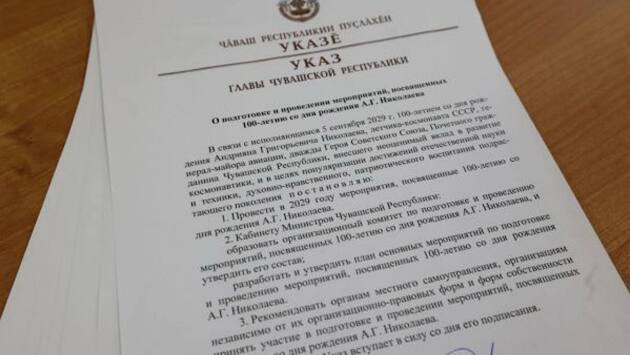 Глава Чувашской Республики Олег Николаев подписал указ о подготовке и проведении в 2029 году комплекса мероприятий, посвященных 100-летию со дня рождения выдающегося летчика-космонавта СССР, дважды Героя Советского Союза, Андрияна Григорьевича Николаева.