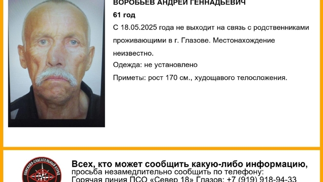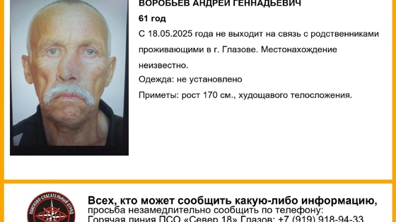 Родственники Андрея Геннадьевича проживают в Глазове. На связь с ними он не выходил с 18 мая 2025 года. Где он может находиться и во что одет – неизвестно. Приметы: худощавое телосложение, рост 170 см, носит усы и искривлён нос.