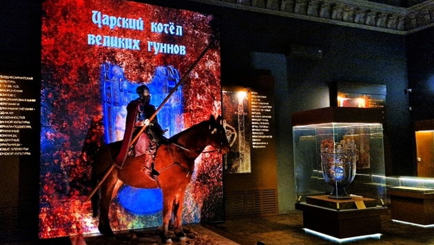 В Волгоградском областном краеведческом музее состоялось важное событие: в экспозиции «Золотой кладовой», где представлены найденные на территории нашей области уникальные произведения искусства сарматского периода эпохи Золотой Орды и поздних кочевников (с IV в. до н. э. по XV в. н. э.), впервые открыт для широкой публики поистине уникальный артефакт, датируемый V веком нашей эры. Это – большой бронзовый котел кочевого народа гуннов. Наш регион воинственные племена этого народа 16 веков назад пересекли по пути из Центральной Азии в Европу.