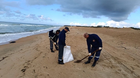 В Анапе очищают берег моря от незначительных выбросов мазута
