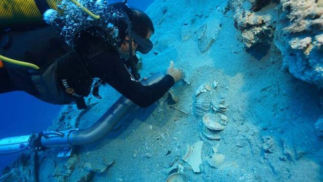 Обнаружен затонувший корабль с уцелевшей посудой