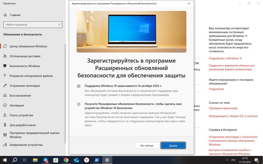 Продлить поддержку Windows 10 можно с помощью Extended Security Updates (ESU) и предлагается: