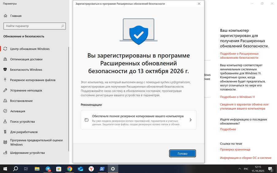 И теперь в «Центре обновления Windows» мы получаем возможность «Зарегистрироваться в программе Расширенных обновлений безопасности».