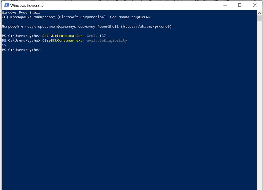 Для смены региона открываем PowerShell. Используем, например, код Казахстана для смены региона: