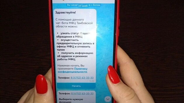 Как отметили в департаменте государственных, муниципальных услуг и документооборота правительства Тамбовской области, чат-бот поможет жителям региона сэкономить время и упростит запись в МФЦ. Кроме того, бот напомнит о запланированных визитах в учреждение.