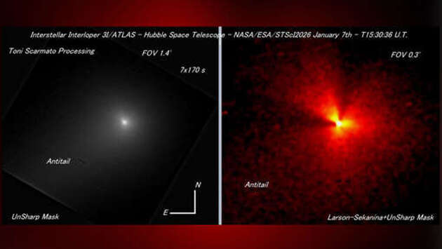 NASA опубликовало новое изображение межзвездного объекта 3I/ATLAS, которое поставило под сомнение существующие представления о поведении комет. Об этом сообщили исследователи проекта All day Astronomy в соцсети Х. По их данным, на первый взгляд снимок выглядит вполне привычно и не вызывает вопросов. Однако при более детальном рассмотрении становится заметно, что объект имеет упорядоченную структуру, ориентированную в сторону Солнца. Это, как отмечают специалисты, противоречит предположениям, которые долгие годы закладывались в модели движения и формирования комет. Авторы публикации добавили, что первоначально объект можно принять за тусклое межзвездное тело, однако дальнейший анализ показывает признаки, нехарактерные для подобных космических объектов. 3I/ATLAS стал третьим межзвездным объектом, выявленным астрономами за всю историю космических наблюдений. До нее были обнаружены астероид Оумуамуа в 2017 году и комета 2I/Borisov в 2019 году. Большинство ученых склоняются к мнению, что это именно межзвездная комета. Однако астрофизик из Гарварда Ави Леб допускает версию искусственного происхождения объекта и считает, что это может быть огромный "инопланетный корабль", поскольку объект демонстрирует признаки искусственного происхождения.