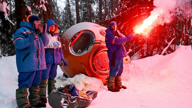 Космонавты прошли тренировку по действиям в случае посадки в зимнем лесу
