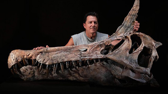 Особое внимание ученых привлекла высокая костная структура между глазами — примерно 50 см, напоминающая изогнутый клинок. В совокупности с длинной челюстью и зубами это придает реконструированному облику необычный, «драконоподобный» вид.
