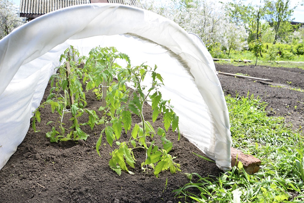 Чтобы защитить растения, важно создать воздушную прослойку. Например, для грядок подойдет агроволокно (спанбонд) плотностью от 60 г/м² (либо более тонкий, но в два слоя) на дугах. Этот материал дышит, не задерживая влагу, и в то же время пропускает свет.