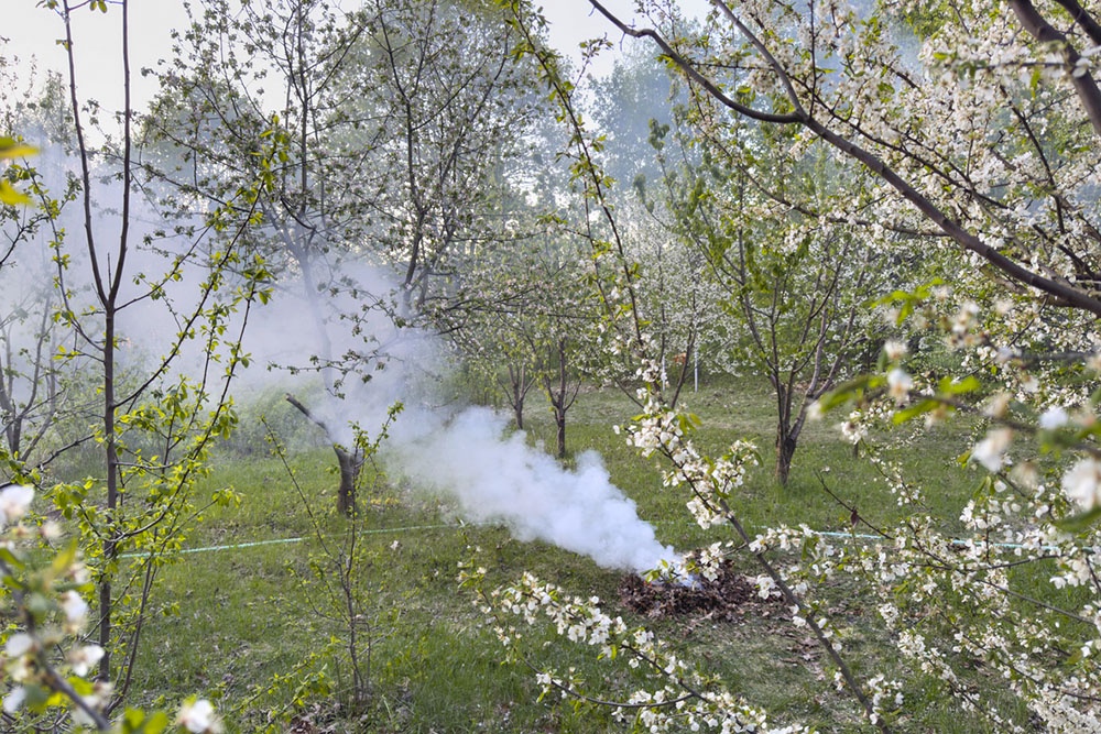 Этот проверенный метод, который использовали крестьяне и в прошлые века, прост: на участке разжигают костры или используют дымовые шашки так, чтобы дым шел на растения, которые нужно защитить. Температура воздуха в итоге становится выше.