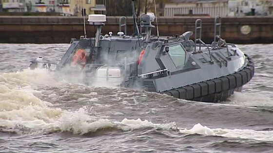 В акватории Финского залива проходят испытания новейшей российской десантно-штурмовой лодки. Лодка проекта 02800 способна развивать скорость 40 узлов (75 км/ч). Оснащена двумя водометными двигателями мощностью по 420 л.с. Лодка создана по заказу ВМФ для оснащения патрульных кораблей, что обусловило ее компактные размеры - 10 метров в длину, 3,5 метра в ширину. В данный момент у субмарины нет аналогов в мире. Лодка оснащена люками и десантной аппарелью. То есть, она может подойти на песчаный и каменистый берег , - сообщил генеральный директор предприятия-изготовителя лодки Кирилл Бирюков. Лодка рассчитана на 10 человек десанта. Практически все оборудование и материалы отечественного производства. Корпус полностью сделан из алюминия. Лодка может вооружаться двумя пулеметами калибром 7,62 мм и одним крупнокалиберным пулеметом типа Корд . Пока построено 6 десантно-штурмовых лодок для новейших патрульных кораблей Черноморского флота. Но уже принято решение, что эта серия точно будет продолжена.