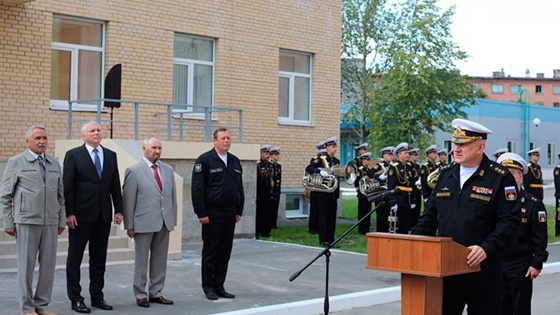 Комплекс позволяет отрабатывать практические навыки всех категорий личного состава по борьбе за живучесть и использованию спасательных устройств и средств корабля. Главком Военно-морского флота (ВМФ) адмирал Николай Евменов открыл новейший береговой тренировочный комплекс «Клен-85» в Учебном центре подготовки экипажей подводных лодок в Сосновом Бору. В церемонии приняли участие генеральный директор конструкторского бюро «Малахит» Владимир Дорофеев, руководство главного военно-строительного управления № 14, начальники управлений и служб Главного командования ВМФ. Тренировочный комплекс «Клен-85» предназначен для групповой и одиночной подготовки расчетов отсеков, командного пункта и экипажа подводной лодки в целом. С использованием комплекса существенно повысится качество отработки основных элементов курсовых задач, подготовки к использованию экипажем подводной лодки штатного вооружения и технических средств, ведению действий, как одиночной подводной лодкой, так в составе групп подводных лодок. Также, комплекс позволяет отрабатывать практические навыки всех категорий личного состава по борьбе за живучесть и использованию спасательных устройств и средств корабля. Для подготовки личного состава используются новейшие тренажеры, учебные классы оборудованы техникой и учебно-методическими материалами, стендами и макетами в реальном масштабе «Открытие комплекса актуально на фоне активного развития ВМФ, ввода в строй новых кораблей и подводных лодок. Эффективность выполнения задачи военно-морского присутствия ВМФ России в Мировом океане напрямую зависит от высококвалифицированных специалистов, профессионалов своего дела. Их подготовка ведется с учетом самых современных требований», - отметил Главком ВМФ России Адмирал Николай Евменов. В ходе церемонии Главком ВМФ перерезал красную ленту и вручил символический ключ начальнику Учебного центра капитану 1 ранга Сергею Белобородову, после чего был произведен осмотр основных составляющих тренировочного комплекса. При осмотре особое внимание было уделено тренажерам и учебным классам, в которых подводникам предстоит оттачивать свои навыки.