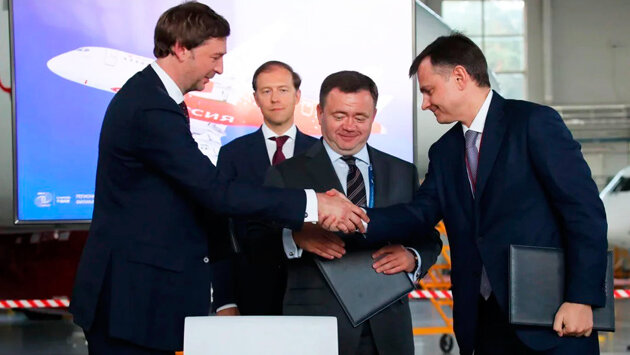 - Подписанные соглашения... подтверждают, что "Суперджет 100" - востребованная машина, - заявил на церемонии подписания контрактов министр Денис Мантуров. - Парк гражданских воздушных судов в российских авиакомпаниях обновляется, и правильно, что это происходит за счет лайнеров отечественного производства.