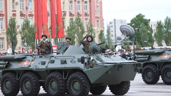 В Ростове-на-Дону прошел военный парад, он начался в 10:00 на Театральной площади. В этом году впервые основу механизированной колонны составили образцы вооружения и военной техники, задействованной в проведении специальной военной операции.