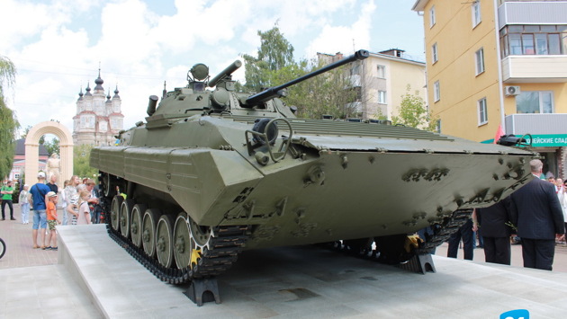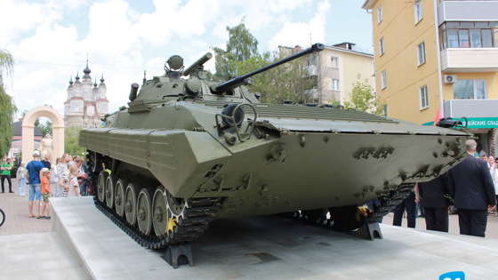 1 июля, в День ветеранов боевых действий, в сквере Защитников Отечества был торжественно открыт памятник боевой машине пехоты. «Это праздник о тех героях, которые защищали интересы нашей державы за ее пределами. А вы знаете, что пределов для нас нет: интересы России есть везде», - сказал, открывая митинг у нового памятника, министр внутренней политики Калужской области Олег Калугин. Повоевать за пределами России пришлось и БМП-2, ставшей памятником. Свой боевой путь она начала в Афганистане. В 90-х воевала в Чечне. Последний бой приняла на Украине, во время специальной военной операции. Министерством обороны России ветеранам она была передана в прошлом году. «Изначально она выглядела так, что даже нельзя было представить, что из нее можно было что-то собрать. Но как наши врачи военные восстанавливают наших ветеранов, так и специалисты завода восстановили», - поделился воспоминаниями председатель областного отделения общественной организации военных инвалидов «ВоИн» Александр Голуб. По инициативе этой организации БМП-2 и «Может быть, найдутся люди, которые скажут: «А зачем здесь так много всего? Есть и афганец, есть и «Журавли». Здесь большая стела, самое святое место – Вечный огонь. Для чего так много?». Я отвечу на этот вопрос. А может быть у кого-то взгляд замылился. Уже привыкли к этому. Вот они памятники, вот мы проходим мимо. А вот придут люди и по-новому теперь посмотрят», - объяснил, почему городские власти поддержали это предложение, глава городского самоуправления Калуги Юрий Моисеев. Машине-легенде отсалютовала другая легенда – автомат Калашникова. Три залпа из этого оружия дали ветераны трех войн - Сергей Жульков, Игорь Москвин и Руслан Радикович.