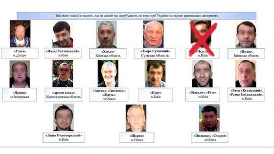 На Украине находятся 14 «воров законов». Их имена раскрыл бывший замглавы украинской полиции Вячеслав Аброськин. Он обнародовал рисунок со схемой. На схеме представлены фотоснимки криминальных авторитетов. Кроме того, упоминаются их псевдонимы и названы города, чью территорию они контролируют. На схеме представлены 15 человек. Однако один из воров в законе зачеркнут. По сведениям Аброськина его раскороновали накануне. Остальные криминальные авторитеты - действующие. Судя по опубликованной Аброськиным информации, «воры в законе» контролируют на Украине следующие города. «Умка» — город Днепр Нодар Руставский — город Киев Хмель — Киевскую область Льора Сумский — Сумскую область Полик — Киевскую область Прицц — город Запорожье Армен хохол — Кировоградскую область Антик, Антимос, Дидусь — город Одесса Куцу — город Киев Магало, Резо — город Киев Рамаз Кутаисский, Рамаз Багдадский — город Киев Лаша Очамчирский — город Киев Шарик — город Одесса Полтава, Старый — город Одесса.