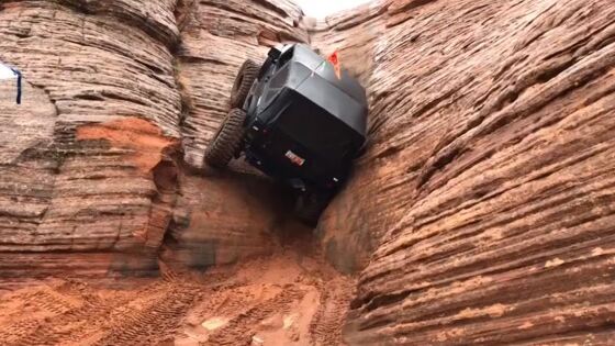 Эксперимент с внедорожником поставили в каньоне национального парка Санд-Холлоу (штат Юта, США). На опубликованных кадрах видно, как машина пытается преодолеть преграду в несколько метров. И со второго раза автомобилю удается подняться по отвесному склону.