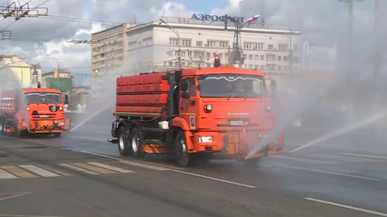В Москве городские службы продезинфицировали проезжую часть, тротуары и парковки специальными средствами для предотвращения распространения коронавирусной инфекции. В обработке было задействовано около 3,5 тыс. единиц распылительной и поливомоечной техники.