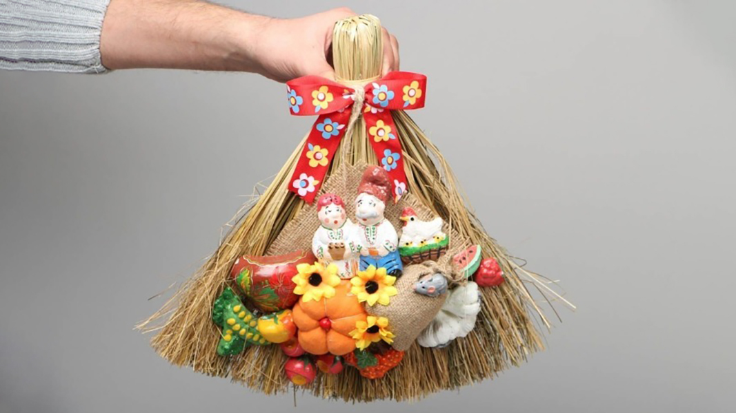 Соберите пучок веточек или соломы. Перевяжите его у основания, сформировав ручку. Украсьте веничек лентами или бусинами.