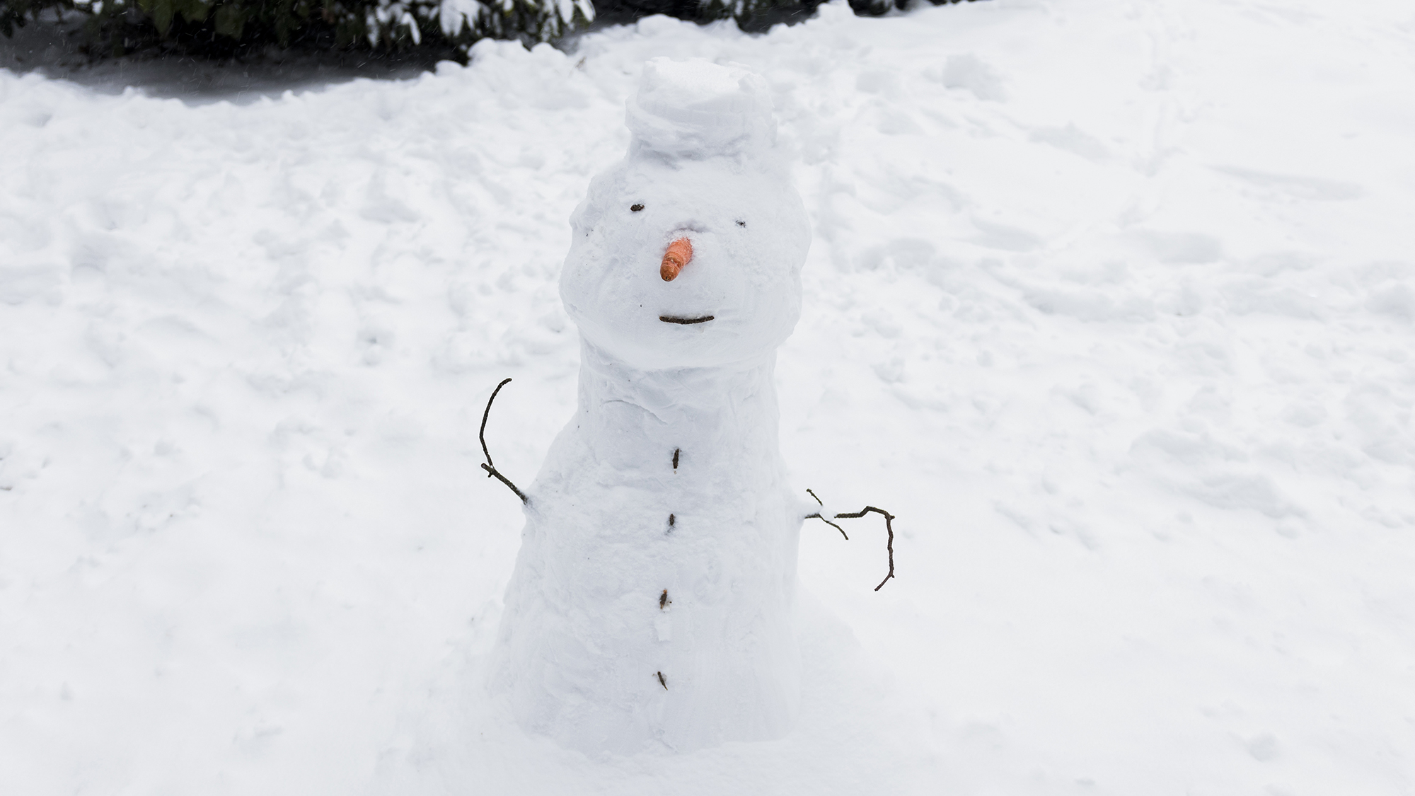 Если лепить не получается (снег слишком сухой) – с помощью палочек и морковки можно сделать снеговика из сугроба.