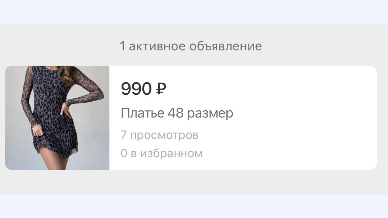 Для сравнения возможностей этих площадок мы опубликовали одинаковые объявления на обоих ресурсах с аккаунта нового пользователя. В качестве объекта для продажи выбрали новое платье с биркой, выставленное по цене 990 рублей.