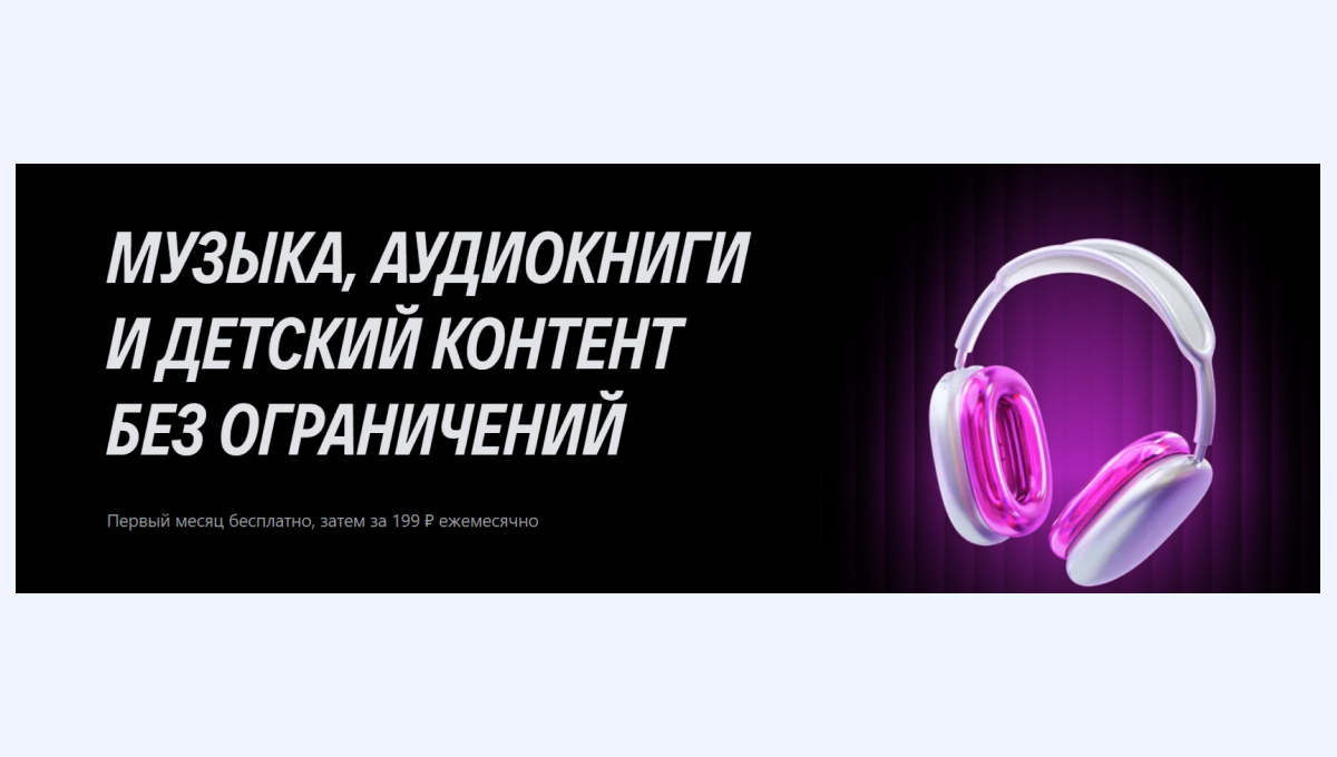Стоимость: первый месяц бесплатно, далее 399 рублей в месяц. Также доступны варианты подписки на 3, 6 и 12 месяцев.