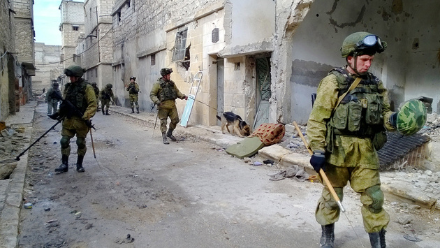 Российские военнослужащие Международного противоминного центра в ходе гуманитарного разминирования освобожденных от боевиков кварталов в восточной части Алеппо за прошедшие сутки очистили от взрывоопасных предметов четыре школы, девять мечетей и один детский сад. Всего с 5 декабря 2016 года разминирована территория общей площадью 966 гектаров, сообщает Российский центр примирения враждующих сторон в Сирии. "От взрывоопасных предметов очищено около 350 километров автодорог и 2149 зданий (из них 111 социально значимых), в том числе 44 школы, 38 мечетей, 10 больниц и поликлиник, два детских сада, три водозаборных станции, две электростанции, одна водоочистная станция и один хлебозавод", - говорится в сообщении.