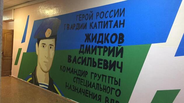 В школе №109 им. Героя России Дмитрия Жидкова в Канавинском районе Нижнего Новгорода появилось изображение героя, в честь которого названа школа. Портрет создан в рамках проекта «Социальные граффити», инициаторами которого выступают «Волонтеры Победы» Нижегородской области при поддержке Фонда президентских грантов. Дмитрий Васильевич Жидков родился 25 августа 1981 года в городе Горьком. Российский десантник, гвардии капитан, Герой Российской Федерации. С 1999 года проходил службу в Вооруженных силах РФ. В 2003 году окончил Рязанское высшее воздушно-десантное училище и был направлен для прохождения службы в 45-й отдельный разведывательный полк воздушно-десантных войск на должность заместителя командира разведывательной группы специального назначения. В 2004 году Дмитрий Жидков находился в длительной командировке в Чеченской республике. В ходе боевых действий проявил мужество и отвагу, за что был награжден Орденом Мужества. В августе 2005 года Дмитрий Жидков был направлен во вторую командировку в Чеченскую республику. 19 декабря 2005 года разведгруппой капитана Жидкова в районе села Харачой Веденского района была обнаружена база боевиков. При преследовании отступавших боевиков Дмитрий Жидков подорвался на взрывном устройстве и был тяжело ранен. Раненый, он продолжал руководить подразделением, лично корректировал огонь артиллерии. В бою было захвачено большое количество вооружения, боеприпасов и снаряжения противника. Капитан Жидков скончался до эвакуации в госпиталь от ран и большой потери крови. Среди его подчиненных погибших и раненых не было. Похоронен капитан в Нижнем Новгороде на кладбище «Березовая пойма». Указом Президента Российской Федерации за мужество и героизм, проявленные при выполнении воинского долга в Северо-Кавказском регионе, Дмитрий Жидков удостоен звания Героя Российской Федерации (посмертно). Проект «Социальные граффити» является победителем грантового конкурса Фонда президентских грантов. В рамках данного проекта планируется создание 15 изображений в разных тематиках. Это портреты участников Великой Отечественной войны, присвоение Нижнему Новгороду звания «Город трудовой доблести», благодарность людям героических профессий, портреты выдающихся соотечественников.