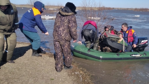 По словам спасателей, группа рыбаков отправилась за уловом на водохранилище. Когда они попытались вернуться к оставленным неподалёку автомобилям, выяснилось, что уровень воды повысился, дорога подтоплена из-за резкого притока талой воды, причем довольно сильно.