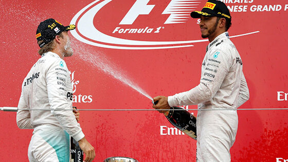 Нико Росберг принёс «Мерседесу» 60-ю победу в Формуле-1, а вместе с ней — третий подряд Кубок конструкторов. Лишь трём легендам «Больших призов» — «Макларену», «Уильямсу» и «Феррари», а также примкнувшему к ним совсем недавно «Ред Булл» удавалось оставаться на вершине три года подряд. Вместе с этим, немец нанёс серьёзный удар по шансам Хэмилтона на четвёртый титул и теперь лишь чудовищное невезение может помешать немцу одержать в этом году свою главную победу. Эти и другие итоги Гран-при Японии — в нашем традиционном обзоре. >>> Гран-при Японии: Росберг начинает и выигрывает. Квят — 13-й «Мерседес»: Росберг — 1-й / Хэмилтон — 3-й «Мерседес» уверенно доминирует на протяжении всего сезона и за четыре гонки до окончания первенства команда обеспечила себе третий подряд Кубок конструкторов. «Серебряные стрелы» теперь входят в число шести команд, которым удавалось выиграть чемпионат Формулы-1 более двух раз. Ну, а что до ситуации в личном зачёте, то победа Нико Росберга существенно её упростила. После финиша Хэмилтон признался журналистам, что сам виноват в провале на старте. Как и в ряде предыдущих гонок, Льюис прорвался вперёд, однако на фоне уверенной победы напарника — уже девятой в сезоне — разрыв в чемпионате достиг 33 очков. Теперь Росбергу достаточно финишировать вторым в каждой из оставшихся гонок, чтобы стать чемпионом. Так, Ники Лауда уже отдаёт титул немцу: «Если всё пойдёт нормально, вопрос о титуле будет решён в ближайших гонках и Льюис уже его не догонит». Хэмилтону же остаётся уповать лишь на фатальное невезение партнёра по команде, которая уже решила все свои турнирные задачи — даже математически никто не сможет помешать «Серебряным стрелам» разыграть титул между собой. Нико Росберг: «Конечно, я знаю о 33 очках, но мой подход останется прежним: гонка за гонкой делать то, что я делал в этот уик-энд». «Ред Булл»: Ферстаппен — 2-й / Риккардо — 6-й Япония принесла «Ред Булл» очередной подиум и солидную порцию очков и также продемонстрировала, что австрийцы в любой ситуации могут доставить «Мерседесам» проблемы. До Росберга Макс Ферстаппен дотянуться не смог, но под финиш сдержал уверенно накатывавшего Льюиса Хэмилтона. Для самого Макса это уже шестой подиум — и шестая награда «Гонщик дня». Даниэль Риккардо после неудачи на старте занял только шестое место, и хотя теперь у австралийца нет даже математических шансов на титул, его третья строчка в чемпионате пока вне опасности — он на 40 с лишним очков опережает Кими Райкконена. Кроме того, восемь очков Даниэля позволили «Ред Булл» ещё немного отыграть у «Феррари» в Кубке конструкторов и оторваться на 50 очков. Макс Ферстаппен: «Сейчас я очень счастлив, но наша главная цель осталась прежней — сохранить место впереди „Феррари“». «Феррари»: Феттель — 4-й / Райкконен — 5-й После штрафа обоих пилотов Гран-при Японии мог завершиться для «Феррари» гораздо хуже, но в этот уик-энд «Скудерия» сработала практически идеально. Тем не менее, несмотря ни на какие тактические ходы, не только «Мерседес», но и «Ред Булл» вновь оказался впереди. Поначалу, правда, Себастьян Феттель успешно выдерживал темп Ферстаппена, но затем команда решила рискнуть с оттянутым пит-стопом. Задумка, увы, не сработала: потери на изношенном «харде» стоили десяти секунд относительно Макса, а свежего «софта» едва хватил