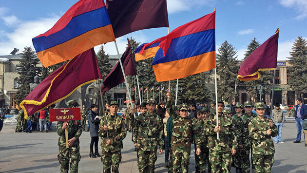 ЕРЕВАН, 5 мар — Sputnik, Арменуи Мхоян. Бабкен много лет назад увидел, как его ровесники в военной форме выполняют строевые упражнения, и с тех пор военная одежда и шаги стали для него мечтой. Сегодня, когда Бабкену уже 15 лет, он, надев военную форму, марширует среди юных добровольцев отряда "Еркрапа". 5 марта, в день рождения Спарапета — именно так называли в народе министра обороны, а затем и премьер-министра Вазгена Саргсяна — Бабкен вместе с более чем 200 юношами и девушками на центральной площади Гюмри перед всеми принес присягу. Он поклялся продолжать дело Вазгена Саркисяна, быть патриотом своей страны и мужественным воином. В Гюмри по соседству со скульптурной группой Вардананц юноши преклонили колени и дали клятву, а за этой церемонией с волнением следили их родители, командиры и члены отряда "Кумайри" добровольческого союза "Еркрапа" — те, которые прошли долгий боевой путь под командованием Микаела Варданяна. Руководители отряда уверены, что сегодняшнее поколение очень хорошее: и подтверждением тому стал апрель 2016 года. В свою очередь военный комиссар Гюмри, полковник Гагик Хачатрян отметил, что связывает большие надежды с сегодняшним поколением. "Эти ребята являются нашим завтрашним днем, если даже 10 процентов из них углубят те знания, которые получают сегодня, то будьте уверены, что у нас проблем не будет. Это большая патриотическая школа", — отметил Гагик Хачатрян. Государственному и военному деятелю Армении Вазгену Саркисяну сегодня исполнилось бы 58 лет. В 1990-1992 гг. он был командиром добровольческих отрядов "Еркрапа". В 1991 году стал первым в истории независимой Армении министром обороны, а в июне 1999 года занял пост премьер-министра. Он был убит 27 октября 1999 года в зале заседаний Национального Собрания Армении во время теракта. Նյութի հայերեն տարբերակը>>