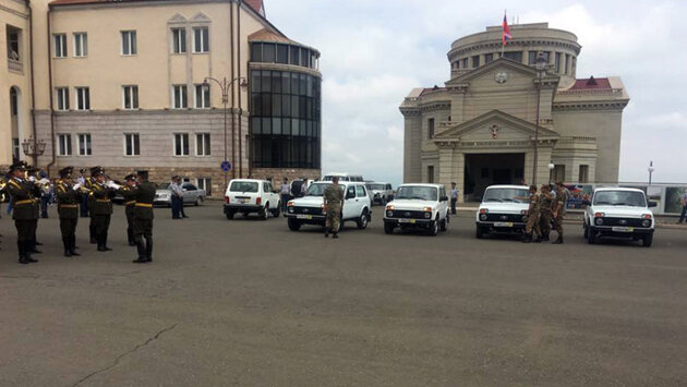 ЕРЕВАН, 5 июн — Sputnik. Группа военнослужащих, раненных в ходе четырехдневной апрельской войны в Карабахе, получили в дар автомобили. В торжественной церемонии, проходившей на площади Возрождения в Степанакерте, участвовал глава непризнанной республики Бако Саакян. Он выразил признательность российскому благотворителю Карену Хачатряну за претворение в жизнь этой благородной идеи. В мероприятии приняли также участие председатель парламента и премьер-министр непризнанной республики Ашот Гулян и Араик Арутюнян.