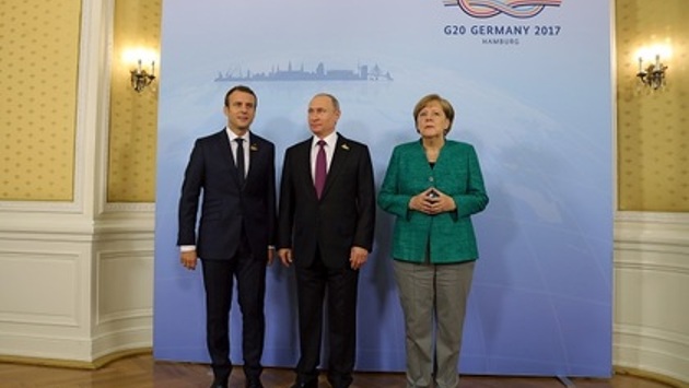 На встрече президента России Владимира Путина, федерального канцлера Германии Ангелы Меркель и президента Франции Эммануэля Макрона в Гамбурге была обсуждена ситуация на Украине и пути ее урегулирования. Об этом в субботу, 8 июля, сообщается на сайте Кремля. Агентство Reuters со ссылкой на представителя немецкого правительства сообщает, что три лидера подтвердили важность соблюдения режима прекращения огня на востоке Украины. Лидеры России, Франции и Германии провели беседу втроем без представителя Украины, так как это государство не входит в «двадцатку» и не числится среди специально приглашенных на текущий саммит G20. В пятницу украинская тема также обсуждалась на переговорах Путина с президентом США Дональдом Трампом. Как сообщил журналистам глава МИД РФ Сергей Лавров, американская сторона проинформировала о назначении своего спецпредставителя по Украине — Курта Волкера, который может в ближайшее время прибыть в Москву.