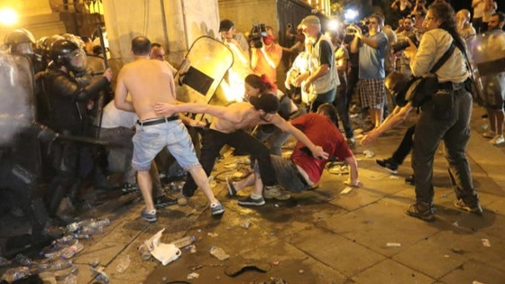 Как сообщалось, собравшиеся у грузинского парламента манифестанты требуют отставки спикера и министра внутренних дел страны. Они пытаются прорваться в здание законодательного органа Грузии, для разгона протестующих полиция применяет слезоточивый газ и резиновые пули. Минздрав страны сообщает о 52 пострадавших, среди которых 38 полицейских, напоминает ТАСС.