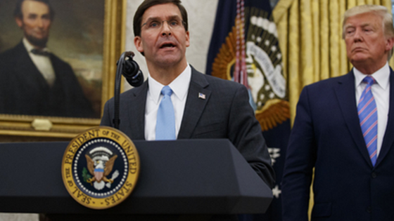 «Нет никого, более подходящего на роль министра обороны, чем Марк Эспер (...) Я уверен, он будет выдающимся министром, совершенно в этом не сомневаюсь. Он исключительный во всех отношениях», — заявил президент. Он также рассказал присутствующим о заслугах нового главы Пентагона, его военных наградах и ученых степенях.