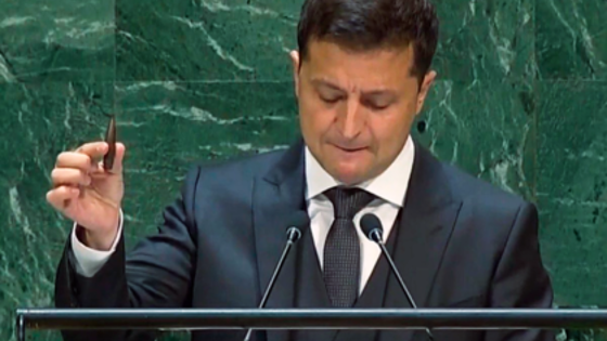 Президент Украины Владимир Зеленский показал на Генассамблее в ООН пулю, которой был убит оперный певец Василий Слипак в Донбассе. Об этом пишет «Лента.ру».