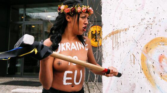 В Париже у ворот Елисейского дворца активистки движения Femen провели акцию перед предстоящей встречей лидеров стран "нормандской четверки".