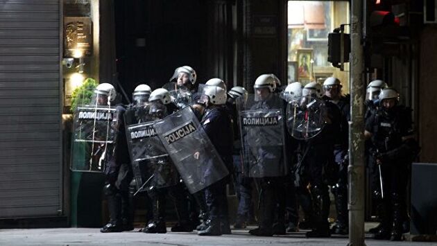В Белграде на протестах ранили десять полицейских