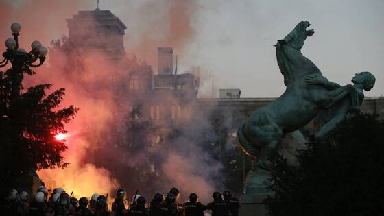 Появилось видео протестов в Белграде из-за COVID19