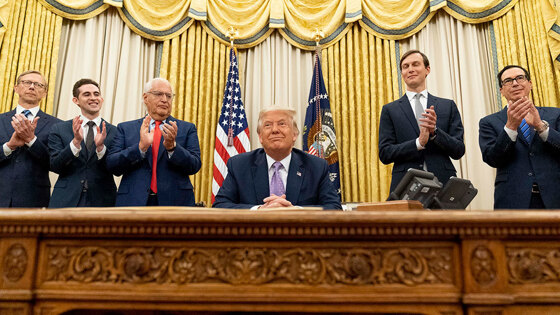 Так, одним из важнейших либеральных мифов было то, что Трамп – это лидер-разрушитель. Он не может вести нормальные переговоры. Сделка же позиционируется его сторонниками как свидетельство обратного. Как доказательство того, что Трамп и только Трамп (в отличие от предыдущих президентов США) умеет заключать сделки между заклятыми врагами. Что он и его зять Джаред Кушнер могут подойти к переговорам с «неожиданной стороны» и обладают возможностями для применения нестандартных решений.
