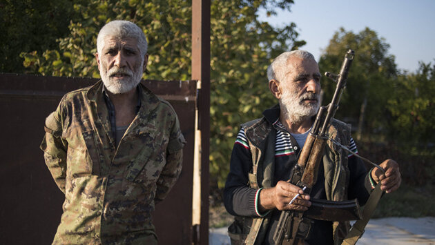 Для 150 тысяч жителей Нагорного Карабаха состояние готовности к войне — это нечто привычное. В столице этого региона городе Степанакерте, который был построен еще в советскую эпоху, есть множество настенных росписей и памятников, прославляющих победы в этом конфликте. Отлично работающая система воздушной тревоги позволяет вовремя оповестить жителей об опасности, чтобы они могли укрыться в своих бомбоубежищах. И у всех, с кем я познакомился в Нагорном Карабахе, либо есть родственники, которые уже служат на передовой, либо они сами собираются добровольно пойти на фронт. Даже Давид, седовласый старик, который был нашим шофером, в некоторые дни появлялся в военной форме.