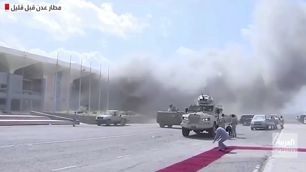 Ранее в районе зала прилетов аэропорта Адена произошло несколько мощных взрывов в момент прибытия туда из Эр-Рияда членов нового правительства, которое было назначено президентом Абд Раббу Мансуром Хади 18 декабря. В состав правительства, сформированного по итогам эр-риядских договоренностей прошлого года между международно признанным правительством и сепаратистами из Переходного совета Южного Йемена, вошли пять министров-южан. Как сообщил РИА Новости местный источник в провинции Аден, министры не пострадали, так как в момент взрыва находились в самолете, позднее их перевезли в правительственный дворец, здание аэропорта и прилегающая к нему местность были оцеплены силами безопасности.