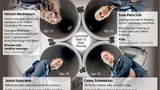 Полностью гражданский экипаж миссии SpaceX Inspiration4 «здоров, счастлив и комфортно отдыхает», - сообщила компания в четверг в своем первом обновлении с момента запуска новаторской миссии с мыса Канаверал.<br>Четверо американских космических туристов «5,5 раза облетели вокруг Земли, завершили свой первый раунд научных исследований и насладились парой приемов пищи», прежде чем лечь спать, сообщила компания Илона Маска.<br>Маск написал в твиттере, что лично поговорил с экипажем и «все хорошо».<br>После пробуждения они впервые увидят купол корабля - Dragon - большой смотровой купол, который впервые был установлен на корабле вместо стыковочного механизма.<br>Миллиардер Джаред Айзекман, ассистент врача Хейли Арсено, ученый-геофизик Сиан Проктор и инженер по аэрокосмическим данным Крис Семброски вращаются вокруг земного шара на высоте, которая порой достигает 590 километров (367 миль).<br>Они находятся выше в космосе, чем Международная космическая станция, орбита которой составляет 420 километров (260 миль), и это самое удаленное место, в котором находились космонавты с 2009 года, когда выполнялась миссия по обслуживанию телескопа «Хаббл».<br>Миссия направлена на сбор 200 миллионов долларов для Детской исследовательской больницы Святого Иуды и изучение биологического воздействия глубокого космоса на тела астронавтов.<br>Однако его главная цель - доказать, что космос доступен обычным людям, поскольку Соединенные Штаты и частные компании, такие как SpaceX, стремятся к дальнейшей коммерциализации космоса.<br>В книге «Космические приключения» рассказывается о летнем сезоне, ознаменованном битвой миллиардеров Ричарда Брэнсона и Джеффа Безоса за достижение последнего рубежа.<br>Но эти полеты давали всего несколько минут невесомости - вместо трех полных дней на орбите, которые испытает экипаж Inspiration4, прежде чем в субботу приводниться у берегов Флориды.