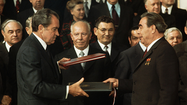 Ровно 50 лет назад, 29 мая 1972 года, генеральный секретарь ЦК КПСС Леонид Брежнев и американский президент Ричард Никсон подписали в Москве документ под названием «Основы взаимоотношений СССР и США». В нем лидеры сверхдержав официально заявляли, что в ядерный век нет альтернатив принципам мирного сосуществования, а интересы безопасности обеих стран основаны на принципах равенства. Советское руководство радовалось появлению этого соглашения, в то время как администрация президента США не придала ей особого значения. Но тогда же были подписаны важные соглашения о сокращении стратегических вооружений, которые снизили риск третьей мировой войны и ядерных ударов. Как проходила историческая встреча Брежнева и Никсона в столице СССР и почему после этого так и не настал настоящий мир?