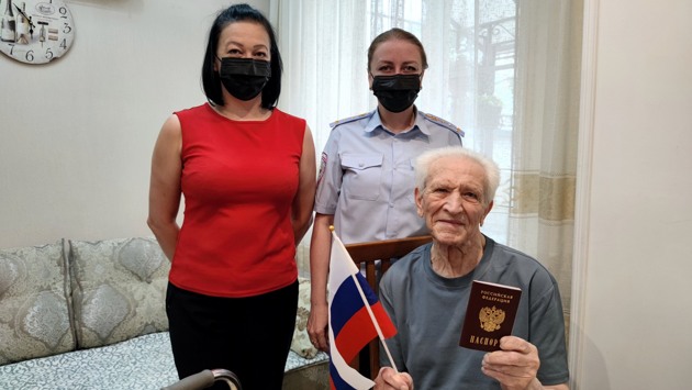В Пятигорск из Донецкой Народной Республики 91-летнего Сергея Ханова перевезли родственники. Он поселился у племянницы, которая обратилась в отдел по вопросам миграции с просьбой об ускорении процедуры получения гражданства. Просьба сразу же нашла понимание у полицейских. Приняв во внимание возраст пожилого человека, сотрудники миграционного подразделения провели все административные процедуры по его месту жительства. Старший инспектор ОВМ ОМВД России по городу Пятигорску капитан полиции Ирина Козлова совместно со специалистом-экспертом Мариной Ларионовой вручили Сергею Ханову паспорт гражданина Российской Федерации, пожелали ему крепкого здоровья и долголетия. Мужчина искренне поблагодарил сотрудников полиции за чуткость, отзывчивость и оказанную помощь.