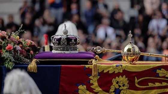 В понедельник, 19 сентября, гроб с телом королевы Елизаветы II вынесли из Вестминстерского дворца, где несколько дней проходило прощание. После поминальной службы в Вестминстерском аббатстве военные горнисты протрубили Last Post — сигнал, подаваемый при отдании воинских почестей. Затем под оружейный салют и бой Биг-Бена по центру Лондона прошла траурная процессия, закончившаяся у арки Веллингтона.