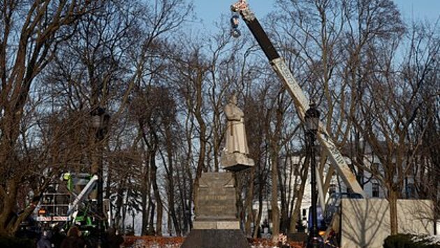 9 февраля в Киеве снесли памятник Ватутину. Ранее сообщалось, что у коммунальщиков возникли сложности с демонтажем — подъемный кран не мог сместить памятник с постамента.
