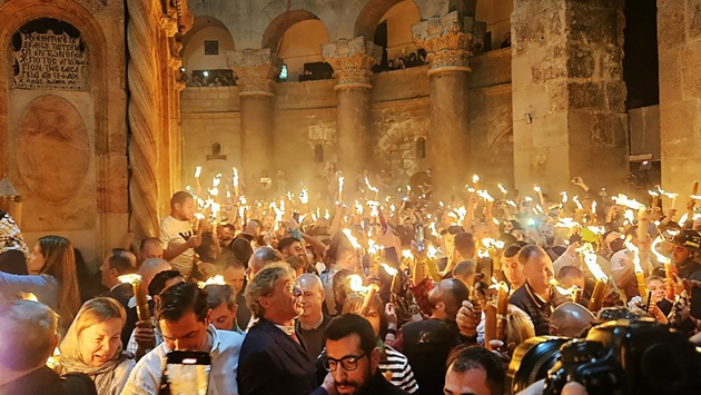 В Великую субботу накануне Пасхи тысячи паломников, собравшиеся в Храме Гроба Господня в Иерусалиме, стали свидетелями схождения Благодатного огня.