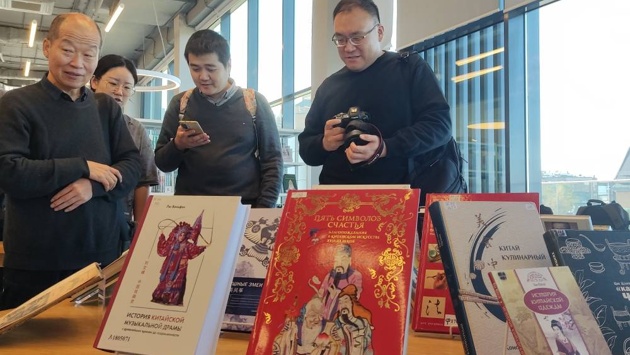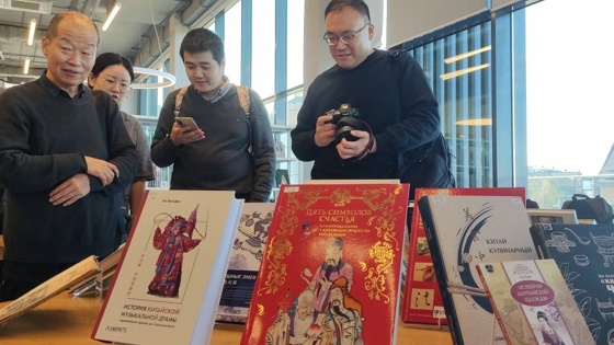 Фотовыставку дополнила экспозиция книг, посвященных Китаю, которые имеются в собрании Национальной библиотеки РТ. А глава логистического подразделения Союза китайских предпринимателей в РФ Кэ Цзинь пополнил эту коллекцию, подарив учреждению еще 100 книг российско-китайских отношениях.