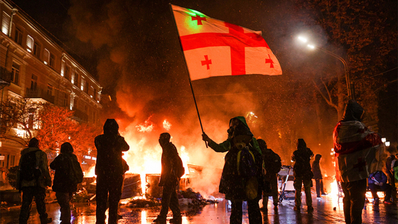 28 ноября в Тбилиси и других городах Грузии вспыхнули протесты после заявления властей о приостановке до 2028 года переговоров о вступлении страны в Евросоюз. По словам Кобахидзе, это решение было продиктовано неприемлемыми действиями европейских политиков, которые, как он выразился, используют гранты и кредиты как инструмент шантажа. Он также раскритиковал Европарламент за «годами звучащие оскорбления» в адрес Грузии.
